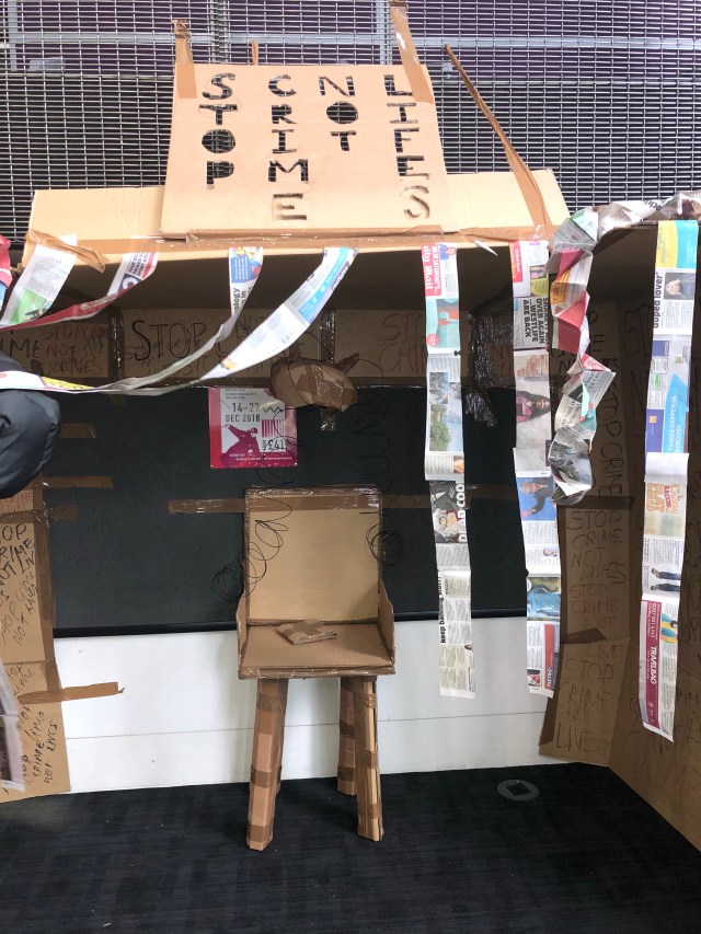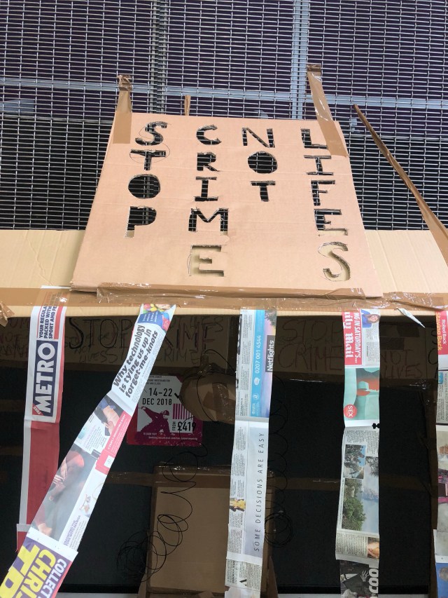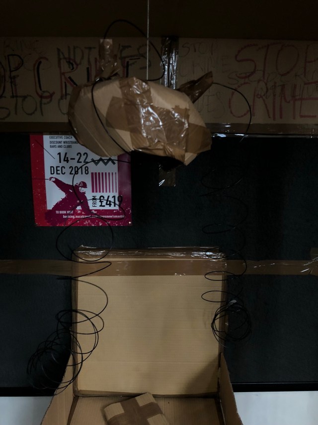The series of ‘A Travel without Visual Experience’ was based within a dark room with no light, and the only way which viewers where able to see the installations was to use a flashlight from our mobile phones. I thought this was a very effective way which would make the audiences focus on the very little details being portrayed within the images.